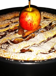 Coloque uma camada de maçã fatiada e peneire sobre ela o açúcar misturado com a canela e continue assim, por camadas.